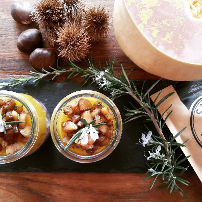 Herbstliches Maroni-Kürbis Dessert mit Sagana für 4 Personen 300 g tiefgekühlte Maroni 2 El Sagana,...