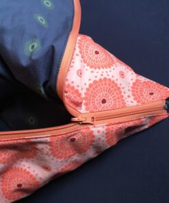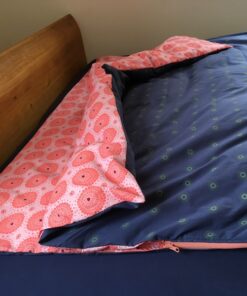2in1-Funktion: Eine damit bezogene Decke erfüllt sowohl die Funktion einer Decke, als auch die Funktion eines Schlafsackes. Ohne Füllung ist der Bezug ein leichter Stoff-Schlafsack, ein idealer Reisebegleiter. Der Oberstoff besteht zu 100% aus rein biologischer Baumwolle (kbA /GOTS). Der Schlafsack-Decken-Bezug ist 40° waschbar. Das Design ist auf beiden Seiten als Schlafsack verwendbar. Der Schlafsack-Decken-Bezug benötigt im Schrank und im Gepäck nur den Platz eines herkömmlichen Duvet-Bezuges. Zwei identische Schlafsack-Decken-Bezüge können je offen miteinander verbunden werden, so dass ein Doppelschlafsack entsteht.