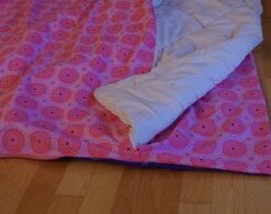 Die Zusammenstellung der Bio-Stoffe ist innerhalb des Sortiments frei wählbar. Der Schlafsack-Decken-Bezug kann an die vorhandene Decke angepasst werden. Produkte werden vorwiegend erst auf Bestellung angefertigt um persönliche Kombinationswünsche zu berücksichtigen. Dadurch kann die Lieferfrist variieren.