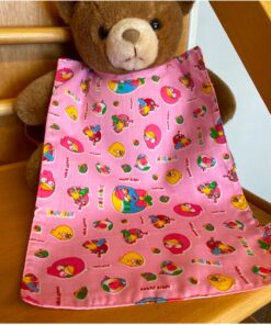 Kinderlatz: doppelseitig benutzbar, eine Seite uni Pink eine Seite pink bedruckt. Masse: H 35, B 25cm.
