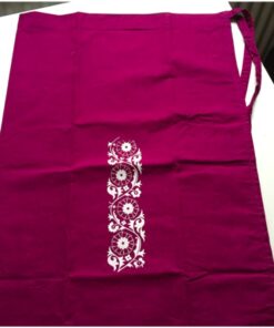 Bistroschürzen: aus Baumwollstoff, 1x pink- und 1x bordeauxrot mit weissem Siebdruck. Masse: B 100cm/L 80cm. In Handarbeit angefertigt.
