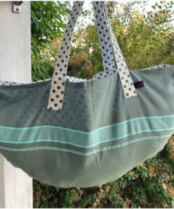 Grösse: Durchmesser der Tasche ca. 140cm x Tiefe 36 cm; Trägerlänge ab Taschenrand: ca. 40- 50 cm (Privattest: Tag /5kg)