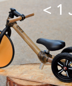 Unter einem Jahr: Mit drei Rädern als Laufhilfe oder als Dreirad. Der Sattel ist sehr tief (23cm) für ein sicheres Abstehen.