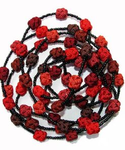 Collier aus roten Textilperlen. Länge ist ca. 70 cm lang und man kann sie gut 2 Mal um den Hals wickeln.