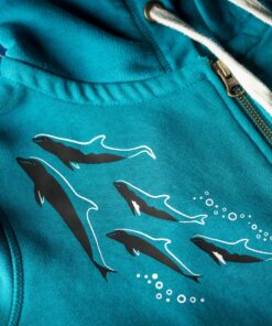 Pro Delfin Jacke geht ein fixer Betrag an eine gemeinnützige Organisation. Bei der Delfin Kollection geht 5.- an Ocean Care, Schweiz.