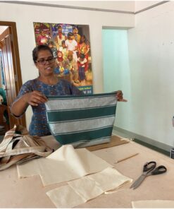 - ASHA ermöglicht Sujatha fair bezahlte Heimarbeit. Dadurch kann Sie ein eigenständiges Leben führen, trotz ihrer Behinderung durch Kinderlähmung.