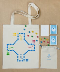 Die praktische Spieltasche mit dem Dog Spiel für Unterwegs! Mit dem aufgedruckten Spielbrett und den mitgelieferten Spielsteinen lässt sich schnell und überall eine Partie spielen! Die Baumwolltasche mit verstärkten Henkeln ist praktisch für die Badi oder Unterwegs.