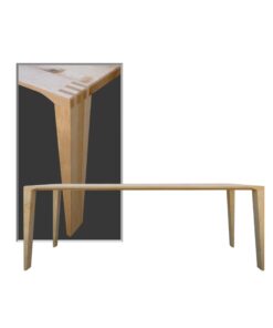 Ein eleganter Tisch, der auf seinen 2 m Länge eine sichtbare Kante von nur gerade 12 mm aufweist. Auf den 90 cm Breite sieht man dann die vollen 39 mm Dicke der Tischplatte. Schlanke konische Beine und die direkte handwerkliche Verbindung zur Platte unterstreichen diese Feinheit.