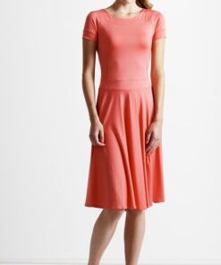 Basic, klassisch und sportlich – Elegantes und bequemes Kleid mit Kurzarm aus Lyocell. Verfügbar in grau/blau (XS) und korallrot (XS). Lyocell-Fasern weisen eine hohe Trocken- und Nassfestigkeit auf, sind weich und absorbieren Feuchtigkeit sehr gut.
