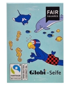 Umweltveränderungen und Klimawandel bereiten auch Globi grosse Sorgen. Die Natur hatte für Globi schon immer einen hohen Stellenwert. Eine Selbstverständlichkeit, dass sich auch Globi stark mit dem Thema Nachhaltigkeit beschäftigt. Bestes Beispiel ist das 2022 neu erschienene Buch „Globi und die Ozeane“. Daran anlehnend hat nun FAIR SQUARED die erste „Globi-Seife“ entwickelt. Ein natürliche Duschseife für Kinder, mit Fairtrade Inhaltsstoffen (MAX HAVELAAR FAIRTRADE zertifiziert), vegan, palmölfrei, klimaneutral, plastikfrei und wie jede Seife bei FAIR SQUARED von Hand durch den Seifenmeister Mohamad Khiro nach altem traditionellem Kunsthandwerk gefertigt.