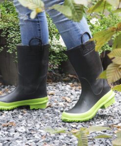 Sie sind erhältlich in der Farbkombination Lindgrün & Schwarz. Gefüttert sind die fairen Gummistiefel, mit Baumwolle.