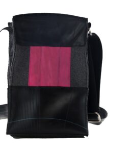 Handtasche aus Reifenschlauch und anderen Stoffen, die aus Abfallhalden stammen. – Träger aus Autogurten – Innentasche – Außentasche mit Reissverschluss Angenehm zum Tragen, sehr robust und widerstandsfähig! Unsere Zulieferer sind kleine umweltfreundliche Betriebe, die wie wir daran glauben, dass eine bessere Welt möglich ist. Die Auswahl reicht von lokalen handwerklichen Organisationen bis hin zu kleinen Recyclingindustrien die sich einer umweltfreundlichen Produktion verschrieben haben. Diese arbeiten nachhaltig und bezahlen Abfallsammler einen weitaus höheren Lohn als dies andere Industriezweige tun. Zudem bieten viele unserer Zulieferer den Arbeitern Aus- und Weiterbildungsmöglichkeiten an und damit die Chance anschliessend im Büro oder gar als leitender Angestellter zu arbeiten. *** Die Produkte aus Recyclingmaterialien sind alle einzigartig. Kleinere Abweichungen von den Bildern in der Website sind möglich***