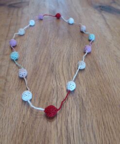 Violeta ist 62 Jahre alt. Nach jahrelanger Arbeit in derselben Firma verlor sie ihren Job. Danach Sie konzentrierte sie sich auf kreative Tätigkeiten. In ihren künstlerischen Ausdrucksformen verbindet sie modernes Design mit traditionellen Stricktechniken und dem heutigen Lebensstil. Inspiration findet sie bei ihren Töchtern und Enkelkindern. Mit ihrer Liebe zum Detail verleiht sie den handgefertigten Halsketten eine einzigartige Note.