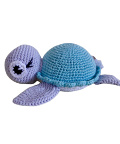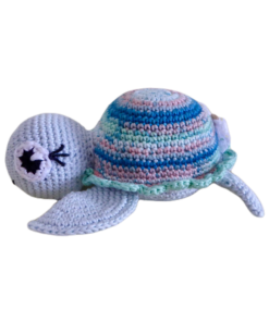 Gehäkelte Schildkröten für die Kleinen aus dem Integrationsprojekt Art for Hope. Sie fühlt sich angenehm weich an und lässt sich bedenkenlos in der Waschmaschine (40C) reinigen.