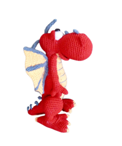 Der gehäkelte Drache eignet sich als Spielzeug für Kleinkinder, fühlt sich angenehm weich an und lässt sich bedenkenlos in der Waschmaschine (40C) reinigen.