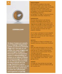 Der Holzbalsam vereint auf ganz besondere Weise natürliche Holzpflege mit Aromatherapie. Mit dem Lederbalsam wird Lederpflege zum Vergnügen!!!