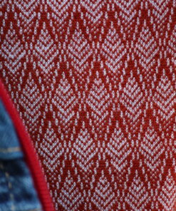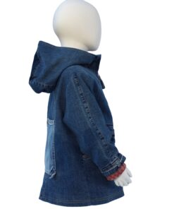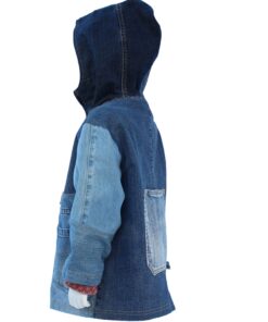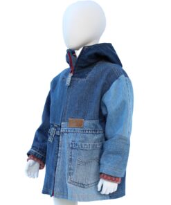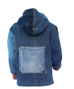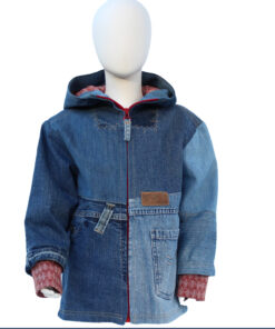 Der weiche Außen Stoff aus used Denim ist individuell ausgestaltet mit Taschen vorne und eine im Rücken.