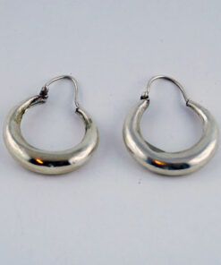 Kreolen Ohrhänger aus poliertem Silber. Dieser Ohrhänger kommen aus einem traditionellen Silberschmiede-Atelier in Katmandu und werden Sie durch seine sorgfältige Arbeit erfreuen.