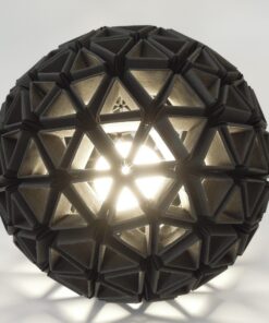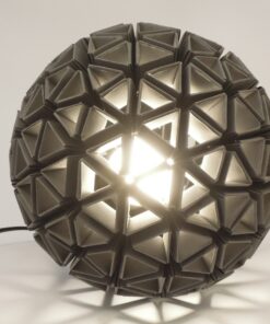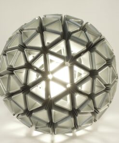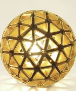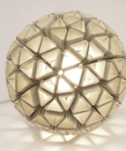 Die dekorative Leuchte eignet sich zum Aufhängen und Aufstellen in Innenräumen. Die Konstruktion besteht aus 180 Dreiecken und insgesamt 440 präzis gefalteten Einzelteilen. Alles hält ohne Befestigungsmittel zusammen.