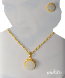 Schmuck Maya Set – Halskette aus Messing mit Edelstein Achat Druzy