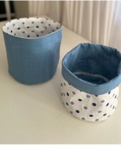 - Utensilo: BW Stoffkorb gross. Weiss/hellblauer, runder Aufbewahrungskorb aus Baumwollstoff innen und aussen. Höhe 14 cm, Durchmesser 16 cm.