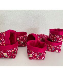 - Utensilos: BW Stoffkörbchen. Beidseitig benutzbar innen uni rot, aussen rot mit Blumenprint, Höhe/Druchmesser 10x12cm, Boden8x10cm.