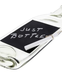 Die Kreide ist mit einer Schnur an der Flasche befestigt und ist bereit für den Kommunikationsaustausch. Nachrichten lassen sich einfach mit einem feuchten Tuch wieder wegwischen. Im Flaschenhals ist ein Draht eingeschmolzen. So können Sie die Notiz Flasche ganz einfach an die Wand hängen. Die Wandtafelfolie ist schwarz, die Kreide wird in weiss geliefert.