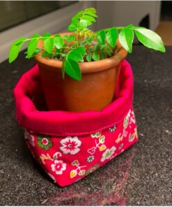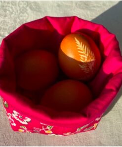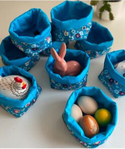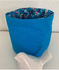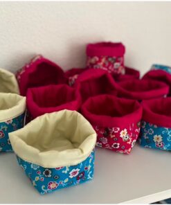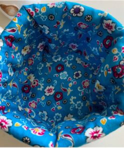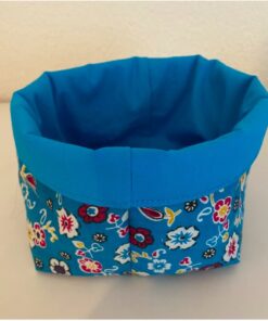 Produktbeschreibung: Körbchen aus Baumwollstoff, flower print (aussen), uni Stoff (innen), beidseitig benutzbar. Durch das Volumenvlies in der Zwischenlage, ist das Körbchen weich und anschmiegsam.