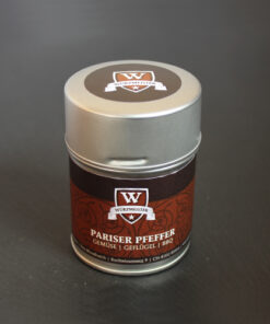 Gewürzmischung Zutaten: Schwarzer Pfeffer*, Chiliflocken*, rosa Pfeffer*, Ingwer*