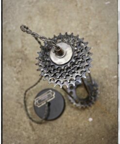 The upcycling lamp made of bike replaced parts .
