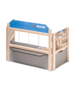 Alter: Ab 5 Jahre Aus Holz gebauter, stabiler Postschalter und Kiosk. Die Steckblende kann ausgewechselt werden: Post – Kiosk, je nach „Schalterpersonal“. Die zwei seitlichen Steckbilder sind dreh und auswechselbar, z. B. auch mit selber gestalteten Bildern. Die Schiebefenster bestehen aus Plexiglas. Marken, Stempel, Einzahlungsscheine, Geld, Karten, diverse Kleber und Postformulare – alles was ein guter Postbeamter benötigt, liegt bei. Für das Bemalen, Lackieren und Beizen werden nur umweltschonende, kindergerechte und nach EN-71 geprüfte Farben und Lacke verwendet.
