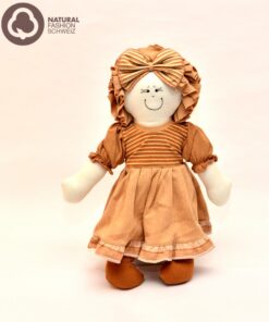 Höhe ca. 45cm 100% natürliche Materialien, hoch atmungsaktiv. Alle Materialien sind aus 100% kbA Bio Baumwolle in Handarbeit gefertigt und überzeugen durch die lange Haltbarkeit. Da unsere Produkte aus natürlichen Materialien handwerklich hergestellt werden, ist jedes Stück ein Unikat und kann daher leicht von den Abbildungen abweichen. Das Kleidchen der Puppe lässt sich wechseln. Hergestellt aus zuschnittresten der Kleidungsproduktion und mit hypoallergenen Silikonfasern gefüllt. Fair-Trade Produkt. Das Produkt wurde zertifiziert durch IBD (Instituto Bio Dinâmico). IBD ist die grösste Bio-Zertifizierungsorganisation Lateinamerikas und gleichzeitig die einzige Organisation in Brasilien, die Biozertifikate nach internationalen Standards verleihen darf (u.a. DEMETER und BIO SUISSE). IBD ist den Prinzipien der IFOAM (International Federation of Organic Agriculture Movements) verpflichtet und zudem Mitglied von ORGANIC EXCHANGE und EMBRAPA (Staatliche Brasilianische Forschungsanstalt für Landwirtschaft).