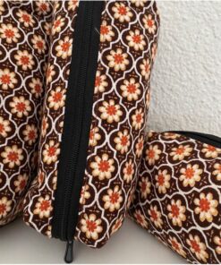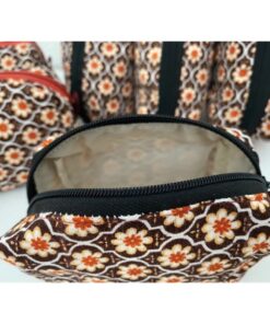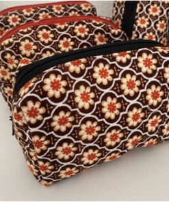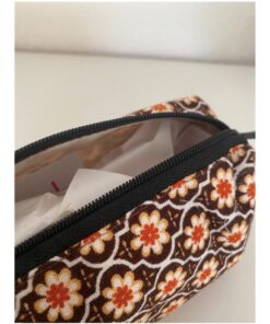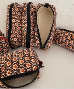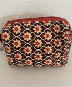 Kosmetikbeutel speziell oder textile Kosmetiktasche. Innen gefüttert, zum Schliessen ein Reissverschluss.