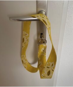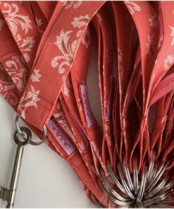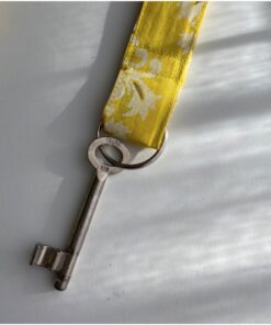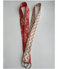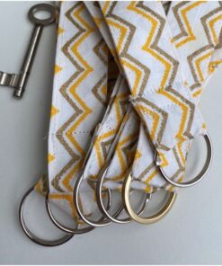 Produktbeschrieb: textiler Schlüsselhalter, angefertigt aus handbedrucktem Baumwollstoff („Hand Block Printing on fabric“ aus Jaipur, Indien). Sie vermeiden Plastik!