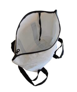 weiss, aber jede wandelbare Rucktasche ist ein Unikat und kann daher in den Details variieren. Die Segel wurden vor der Herstellung gewaschen, können jedoch kleine Unregelmässigkeiten und Flecken besitzen.