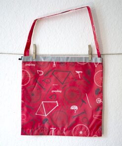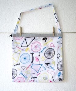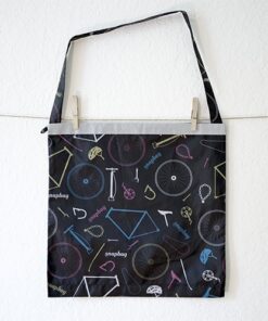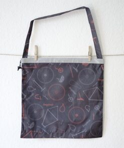 Unsere erste Idee war der Snapbag. Eine Tasche mit fünf Funktionen: Einkaufstasche im Kleinformat, Hosenbeinklammer, Helmpellerine, Helmaufbewahrungsbeutel und nicht zuletzt hell reflektierender Schutzengel auf dunklen Strassen.
