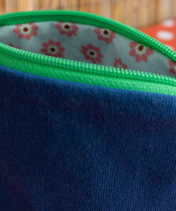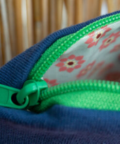 «Blau-Twiggy S» ist innen wasserfest. Aussen mit Schlaufe und grünem Reissverschluss.