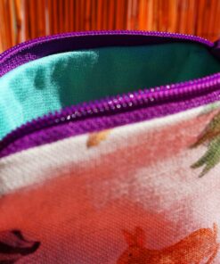 «Waldtiere-mint S» ist natur-braun/grün, innen mintfarbig. Aussen mit Schlaufe und violettem Reissverschluss.