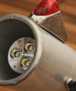 Die Flasche wurde einen alten Velo-Gepäckträger eingebaut Der Lichtkegel kann perfekt ausgerichtet werden. Mit einem Steckernetzeil und Schnurschalter ausgerüstet.