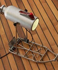 Die alte Bettflasche hat ein neues Leben als Tischlampe gefunden.
