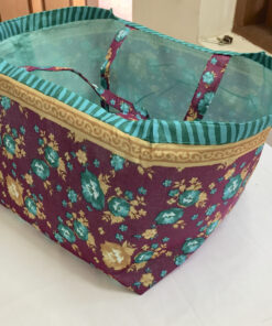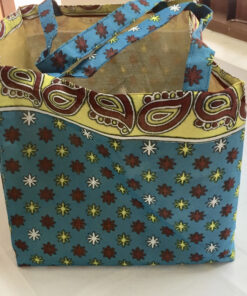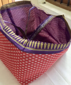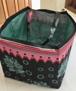 Die Tasche ist aus farbigen Sari-Stoffen hergestellt (Upcycling), was die unterschiedlichen Muster erklärt. Innen ist sie leicht verstärkt und mit farblich passendem Stoff gefüttert. Mit dieser leichten, faltbaren dennoch stabile Stofftasche, vermeiden Sie Plastik, da sie auch in jeder Handtasche Platz findet. Grösse: 40x40cm, Randhöhe: ca. 24cm