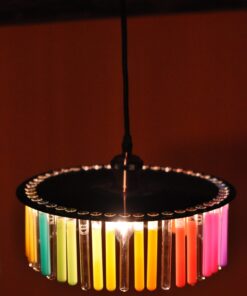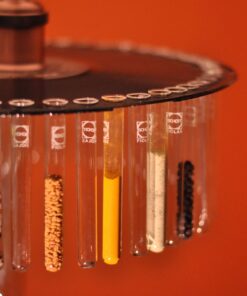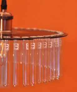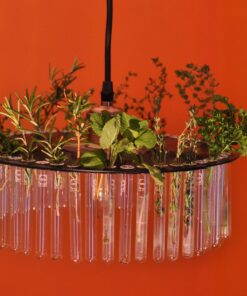 Die Lampe wird an der Decke montiert und die Reagenzgläser können nach Bedarf mit Gewürz, Kräutern oder anderen dekorativen Elementen befüllt werden. Für die Vintage-Lampenfassung mit Textilkabel kann wahlweise ein helles oder warmes Leuchtmittel bestellt werden.