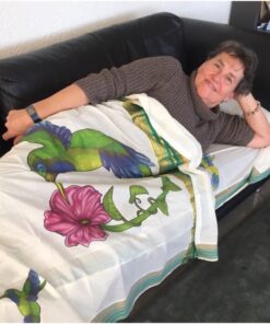 Mit dem Kauf dieses Upcycling Schlafsacks ermöglichen Sie fairen Lohn und eine Existenzsicherung für Menschen mit einer Behinderung. Einzeln angefertigt in Heimarbeit,Kerala, Südindien.