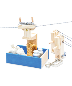 Das Warengondel-Set ist mit der Holzseilbahn oder als eigenständiges Spielzeug gut geeignet, in der kleinen Gondel lassen sich sogar kleine Botschaften durch den Raum schicken… Die Waren auf der Abbildung werden nicht mitgeliefert. Unsere Spielzeuge zeichnen sich durch Langlebigkeit und kindgerechtes Design, bunte Farbgebung und hohe Materialqualität aus. Zum Bemalen, Lackieren und Beizen werden nur umweltschonende, kindergerechte und nach EN-71 geprüfte Farben und Lacke verwendet. Für die Herstellung der Spielwaren wird ausschliesslich zertifiziertes Massivholz aus der Schweiz verwendet.