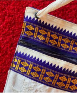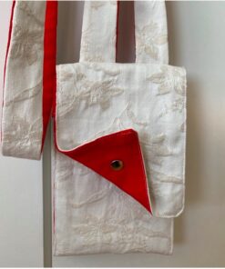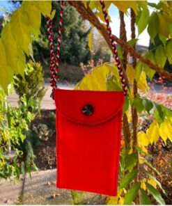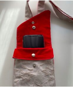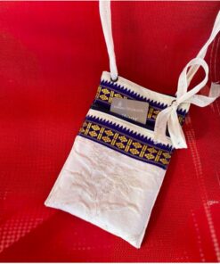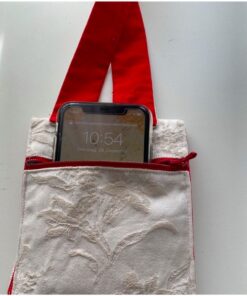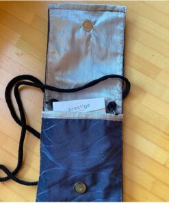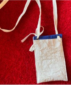 Produktbeschreibung: kleine Umhängetasche aus Stoff. Innen gefüttert und sorgfältig verarbeitet. Langer Träger oder Kordel, grössere Tasche mit Reisverschluss hinten, zur sichern Verwahrung von wichtigen Dokumenten.
