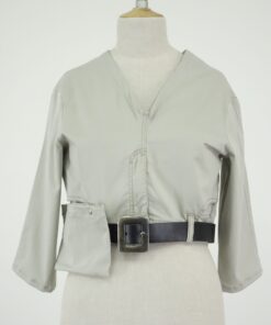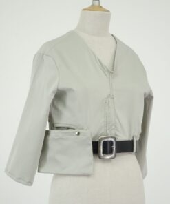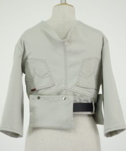 Damen-Top mit 3/4 Ärmeln und Gurttaschen. Dieses Oberteil ist ein ausgefallener Hingucker. Bekannte Details tauchen an überraschenden Stellen auf. Die Hosentaschen können nicht verwendet werden, dafür nehmen die zwei Gurttaschen das Nötige auf. Der Gurt ist nicht Bestandteil des Angebots.